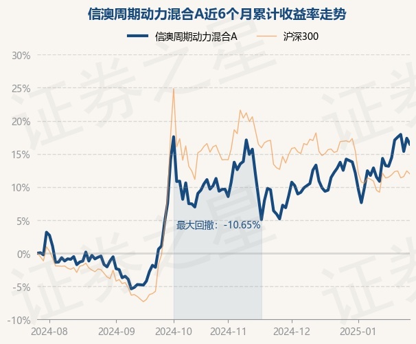 本站消息,1月27日,信澳周期动力混合A最新单位净值为1.2722元,累计净值为1.2722元,较前一交易日下跌0.75%。历史数据显示该基金近1个月上涨2.18%,近3个月上涨5.73%,近6个月上涨16.48%,近1年上涨16.9%。该基金近6个月的累计收益率走势如下图: